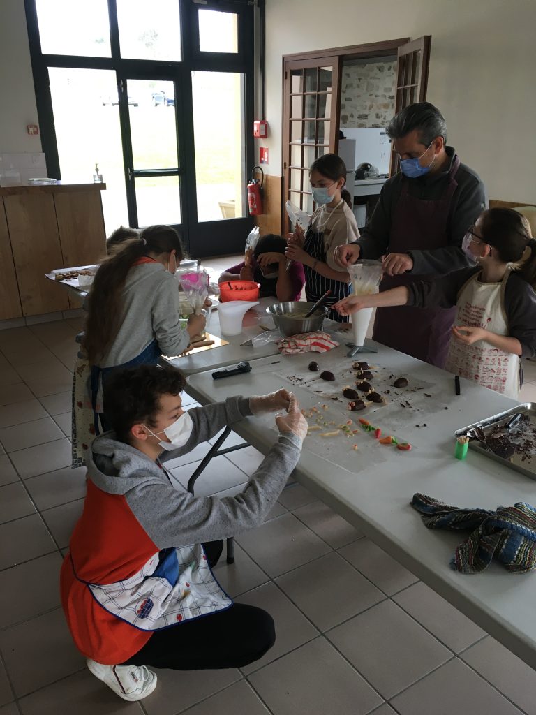 Le 13 avril dernier le CLAS a organisé un premier atelier autour du chocolat à Séreilhac. Cet atelier a été l’occasion de réunir 5 duos (parent et enfant) autour d’une Cheffe, pour fabriquer, et déguster gâteaux et sujets en chocolat !!!
